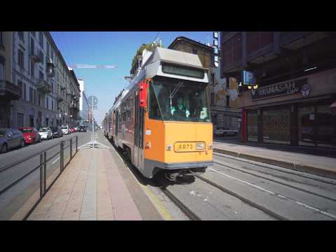 Italy, Milan, tram 2 ride from Via Farini Via Valtellina to Lanza Brera-...